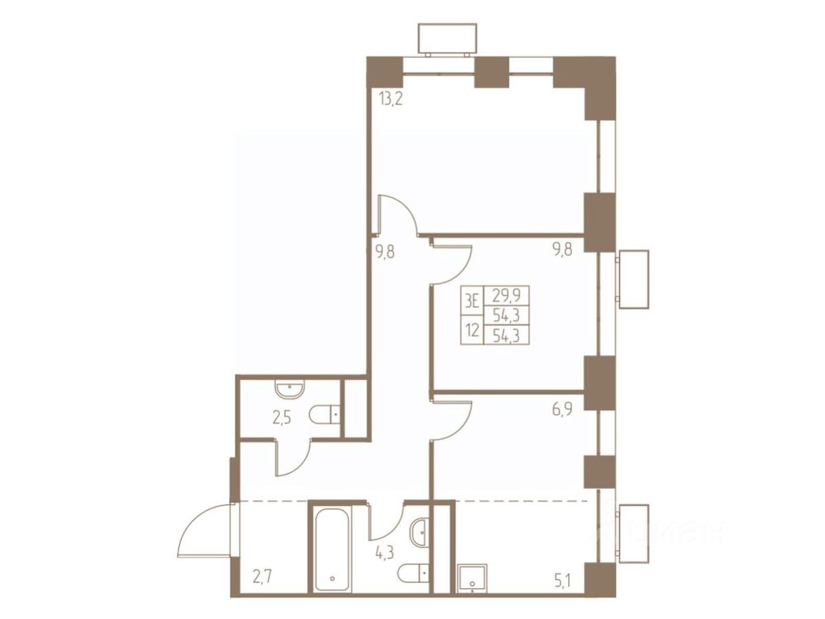 54,3 м²