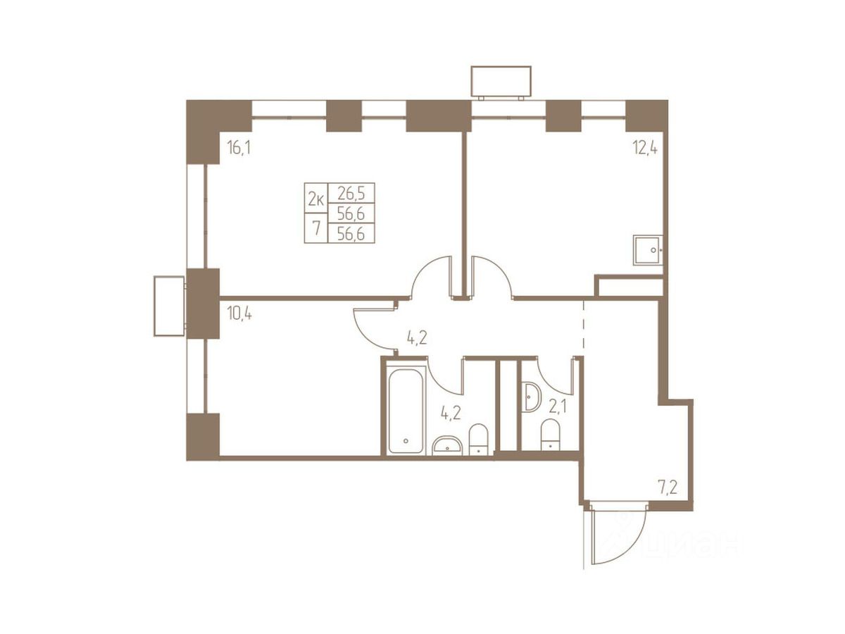 56,6 м²