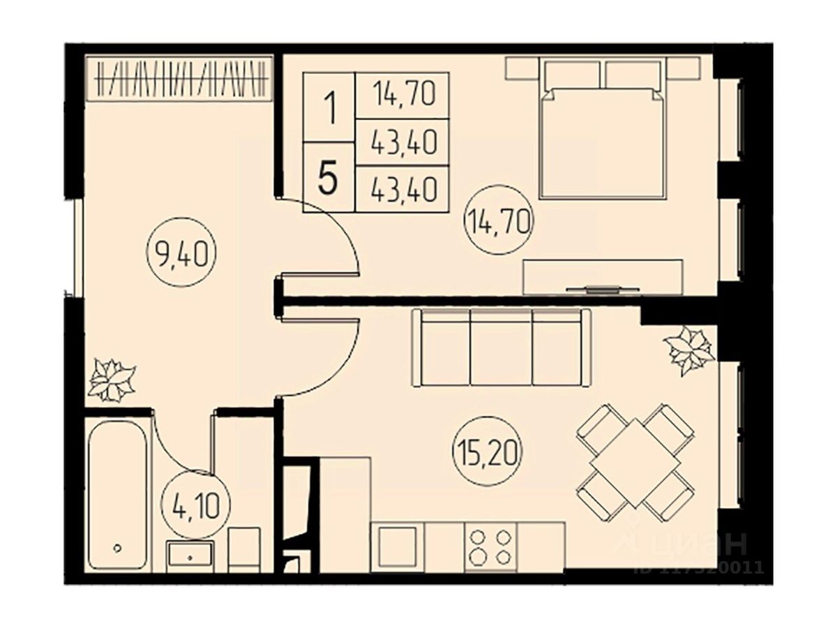 43,4 м²