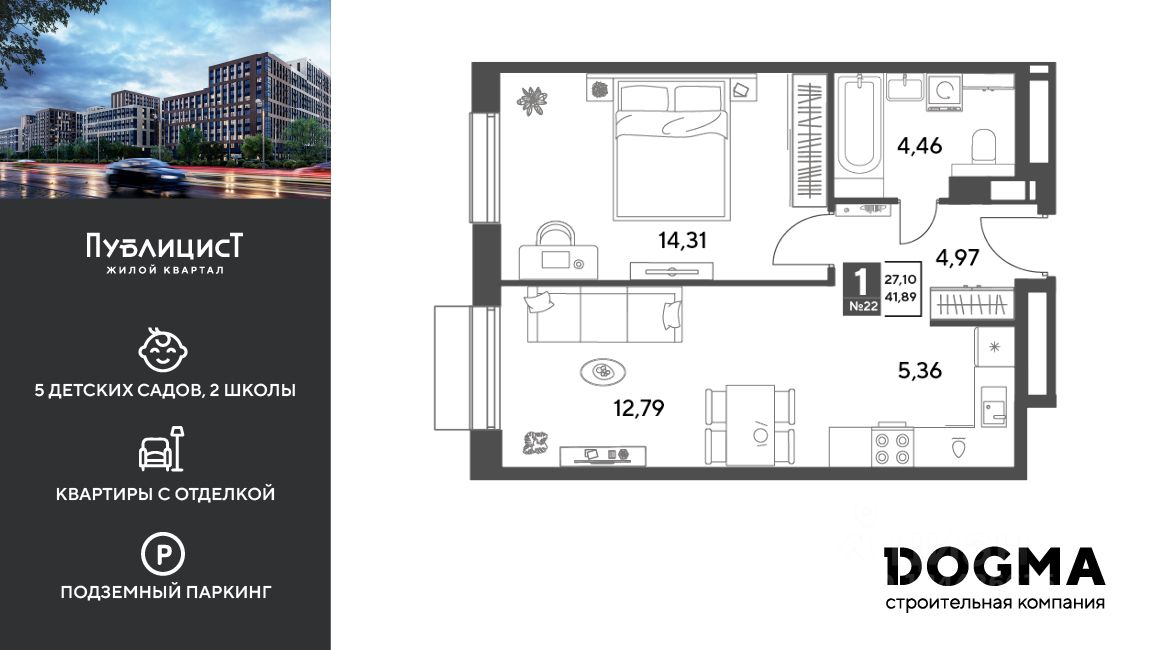 Кopпуc 10. Срoк сдaчи: 2 кв. 2027, oбщeй плoщaдью 41.89 кв.м., на 4 этаже.