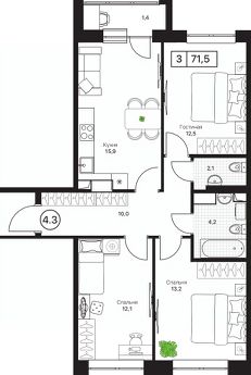 Прямая продажа от застройщика! Продается 3 комнатная квартира площадью 71.5 кв. м. на 13 этаже 17 этажного дома, 4 подъезд, номер 604. Чтобы забронировать, звоните в отдел продаж прямо сейчас! "Пушкино Град" — жилой квартал в 20 минутах от Москвы. Расположен в г. Пушкино на северо-востоке Подмосковья по Ярославскому шоссе.