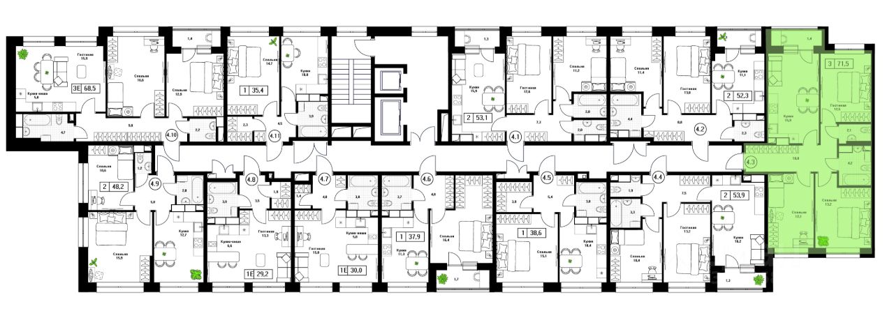 Доступны выгодные условия покупки квартир: семейная ипотека, военная семейная ипотека, IT-ипотека, траншевая ипотека, рассрочка от 0%.