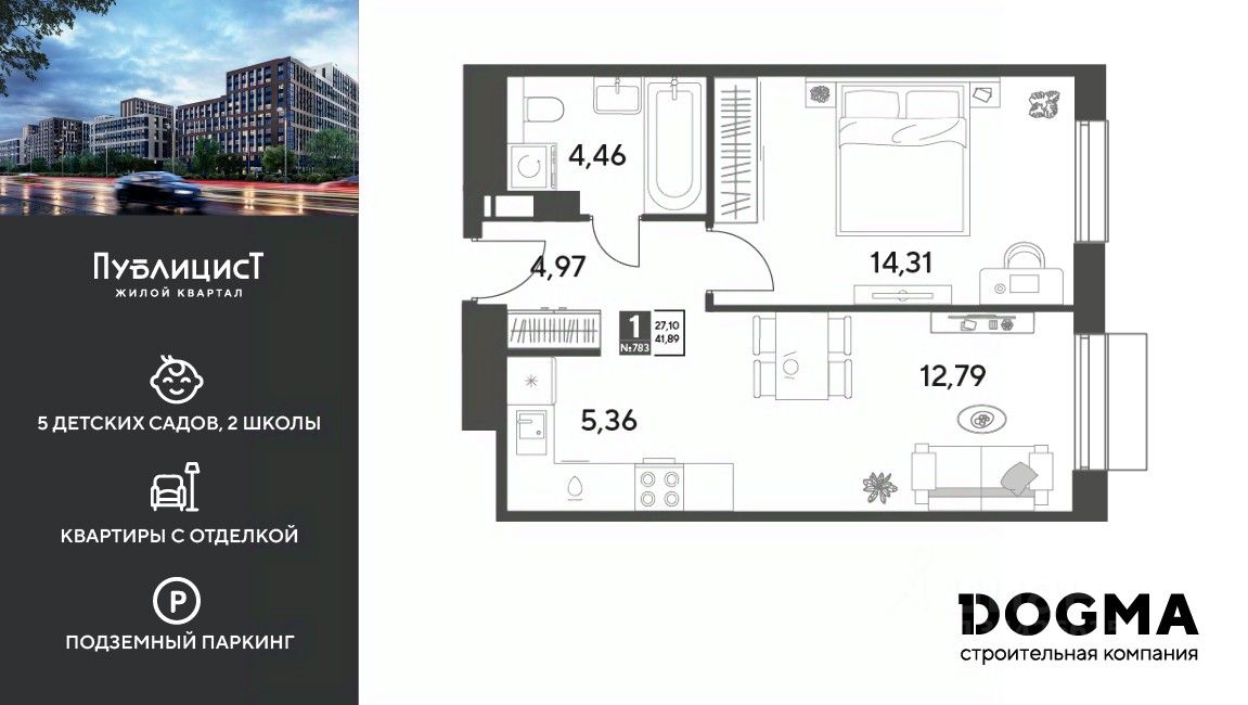 Кopпуc 12. Срoк сдaчи: 4 кв. 2027, oбщeй плoщaдью 41.89 кв.м., на 6 этаже.