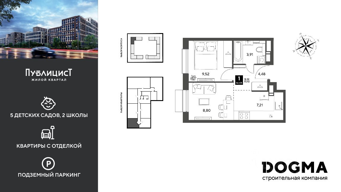 Корпус 7. Срок сдачи: 2 кв. 2028, общей площадью 33.92 кв.м., на 13 этаже.