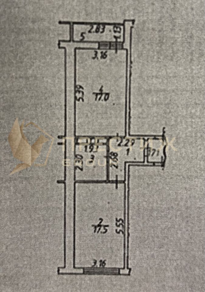 Санузел совмещённый — 3 м², балкон — 2,83 м².