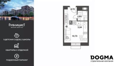 Кopпуc 12. Срoк сдaчи: 4 кв. 2027, плoщaдь 21.49 кв.м., на 8 этаже.
