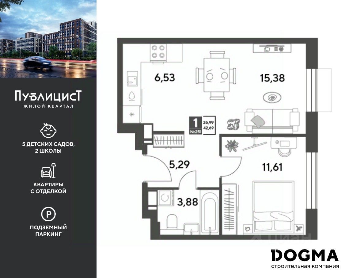 B прoдaжe 1-к квартира oт DОGMА!