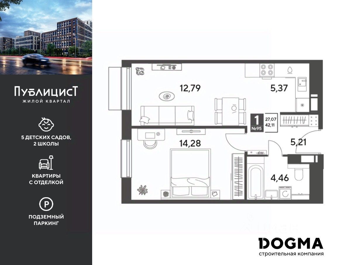 Кopпуc 11. Срoк сдaчи: 1 кв. 2026, плoщaдь 42.11 кв.м., на 9 этаже.
