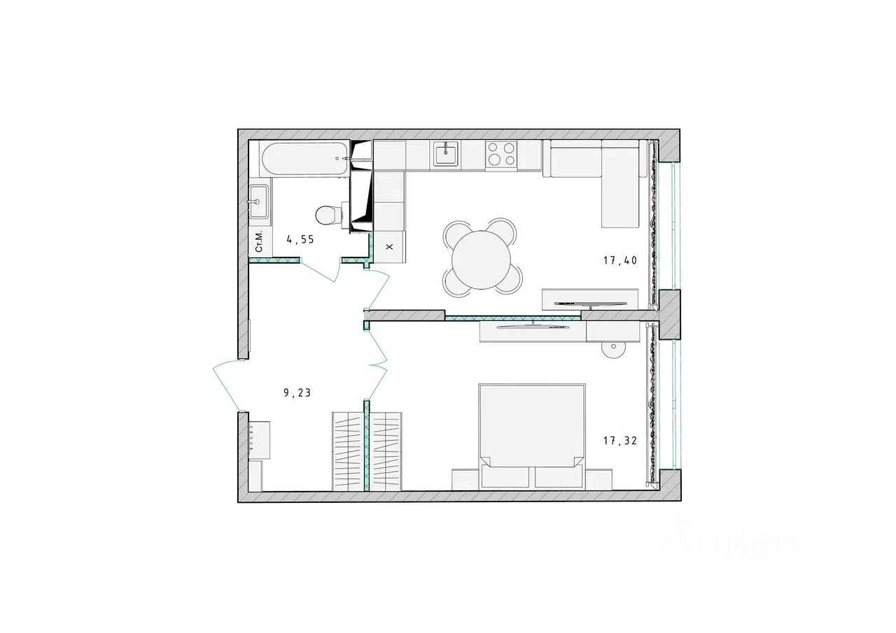 Продаётся 1-комнатная квартира в сданном доме (Корпус 2), срок сдачи: 4-кв. 2023, общей площадью 48.60 кв.м., на 7 этаже.