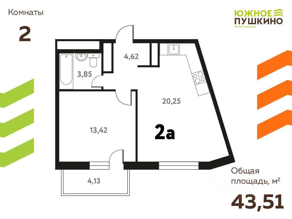 Общая площадь43,51 м²