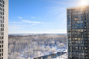 Вид: 13-й этаж дарит потрясающую панораму на парк и реку, а не в окна соседей.