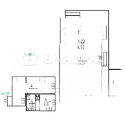Смежную комнату можно изолировать перегородкой, в потолке вмонтирована перекладина. Квартира очень тёплая с хорошей шумоизоляцией.