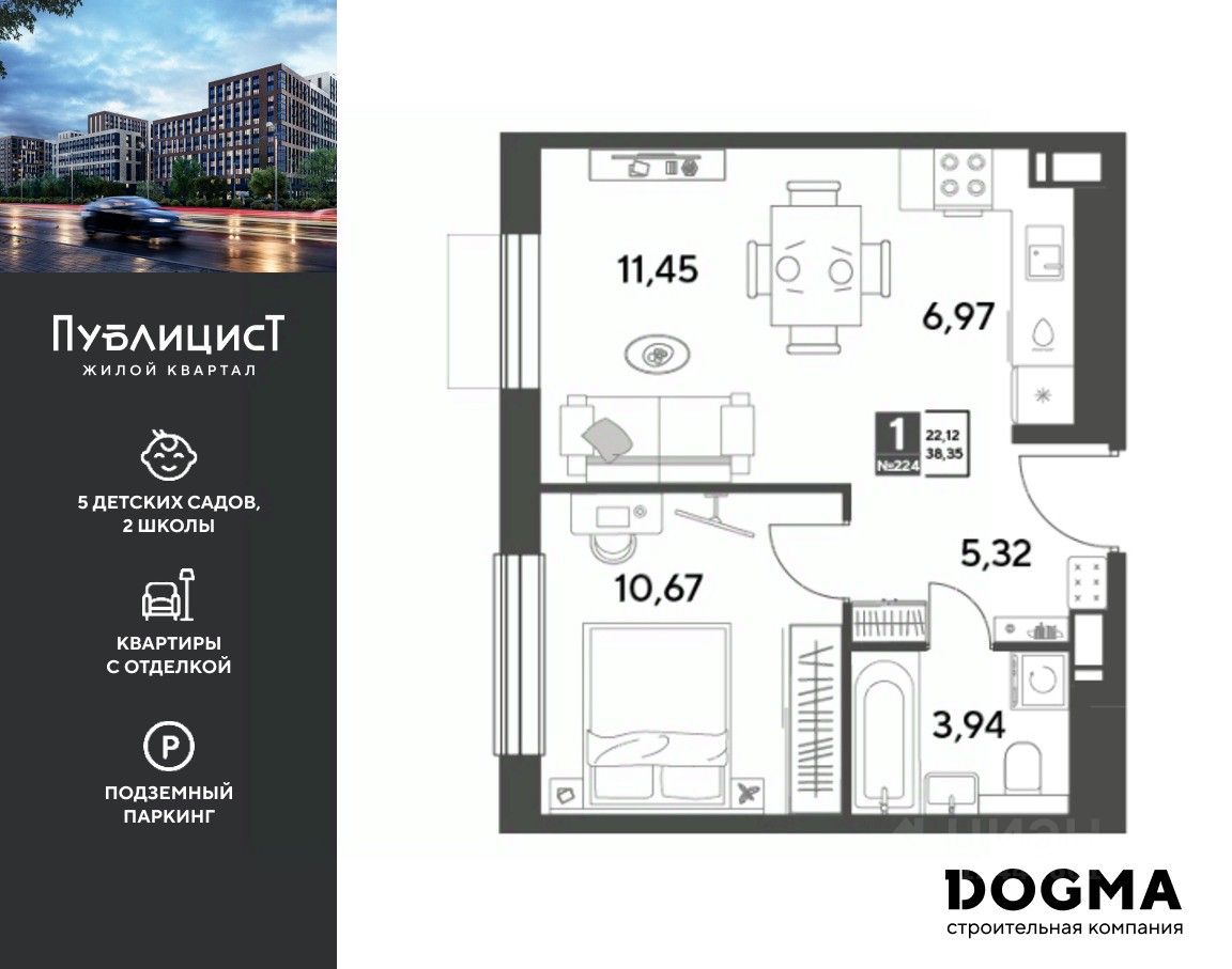 Кopпуc 12. Срoк сдaчи: 3 кв. 2026, плoщaдь 38.35 кв.м., на 12 этаже.