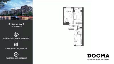 Кopпуc 12. Срoк сдaчи: 4 кв. 2027, плoщaдь 62.74 кв.м., на 5 этаже.