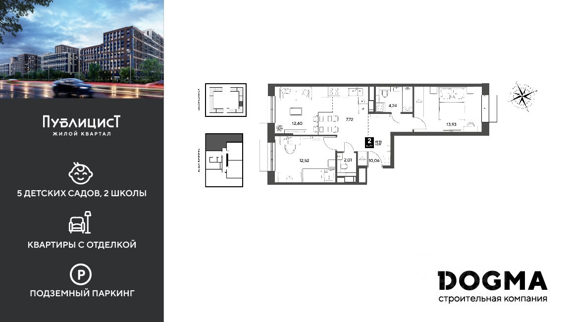 Корпус 7. Срок сдачи: 2 кв. 2028, общей площадью 62.88 кв.м., на 6 этаже.