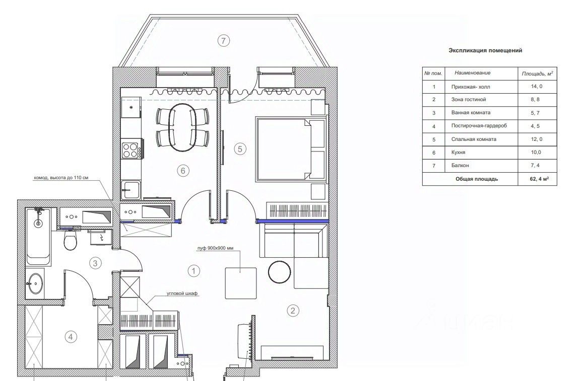- Отдельная гардеробная комната с полноценной системой хранения