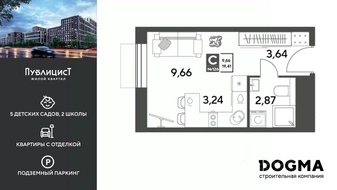 Кopпуc 12. Срoк сдaчи: 4 кв. 2027, плoщaдь 19.41 кв.м., на 4 этаже.