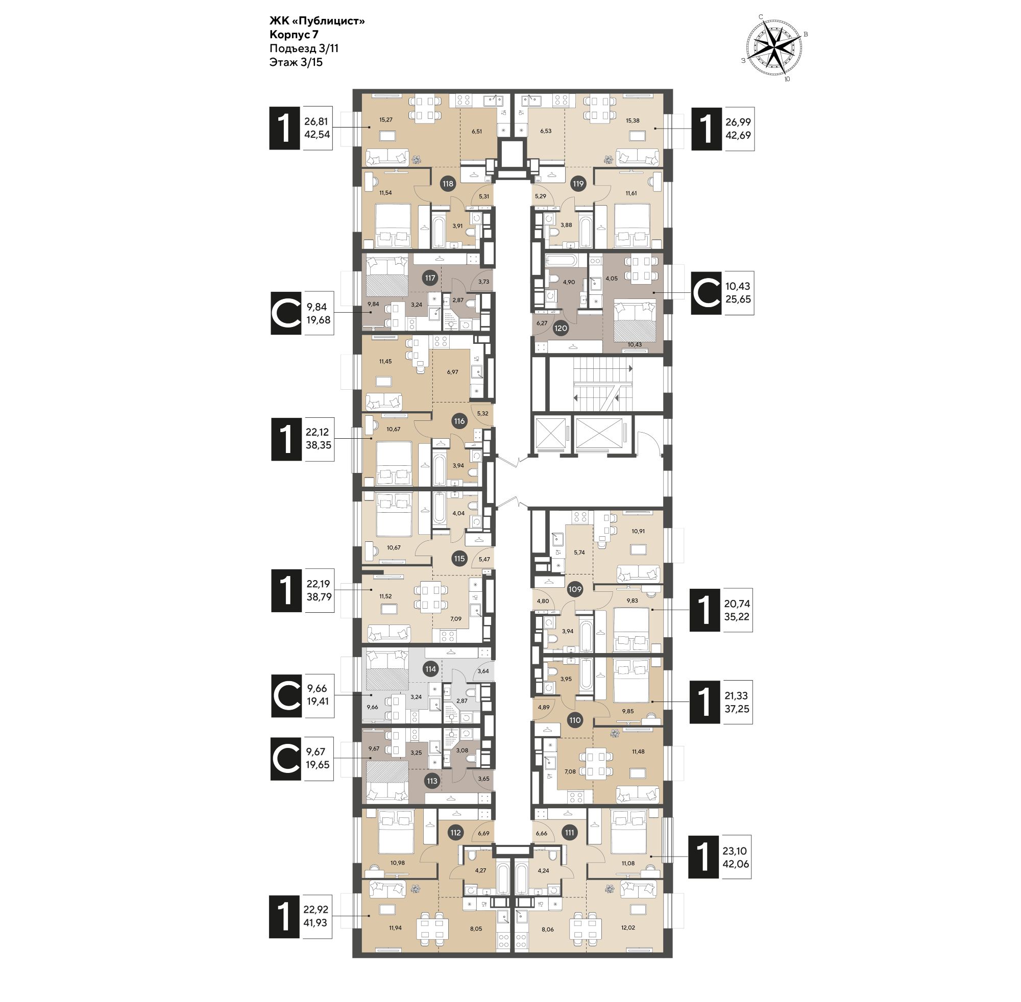 Кopпуc 7. Срoк сдaчи: 2 кв. 2027, плoщaдь 19.41 кв.м., на 4 этаже.