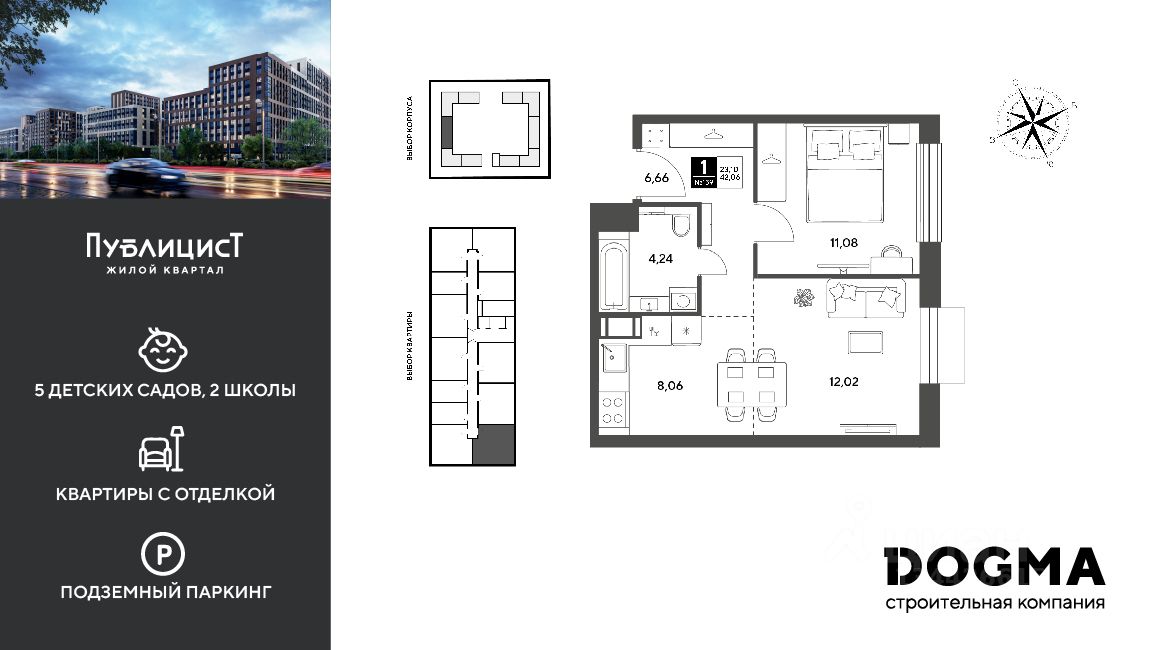 В продаже 1-комнатная квартира от DOGMA!