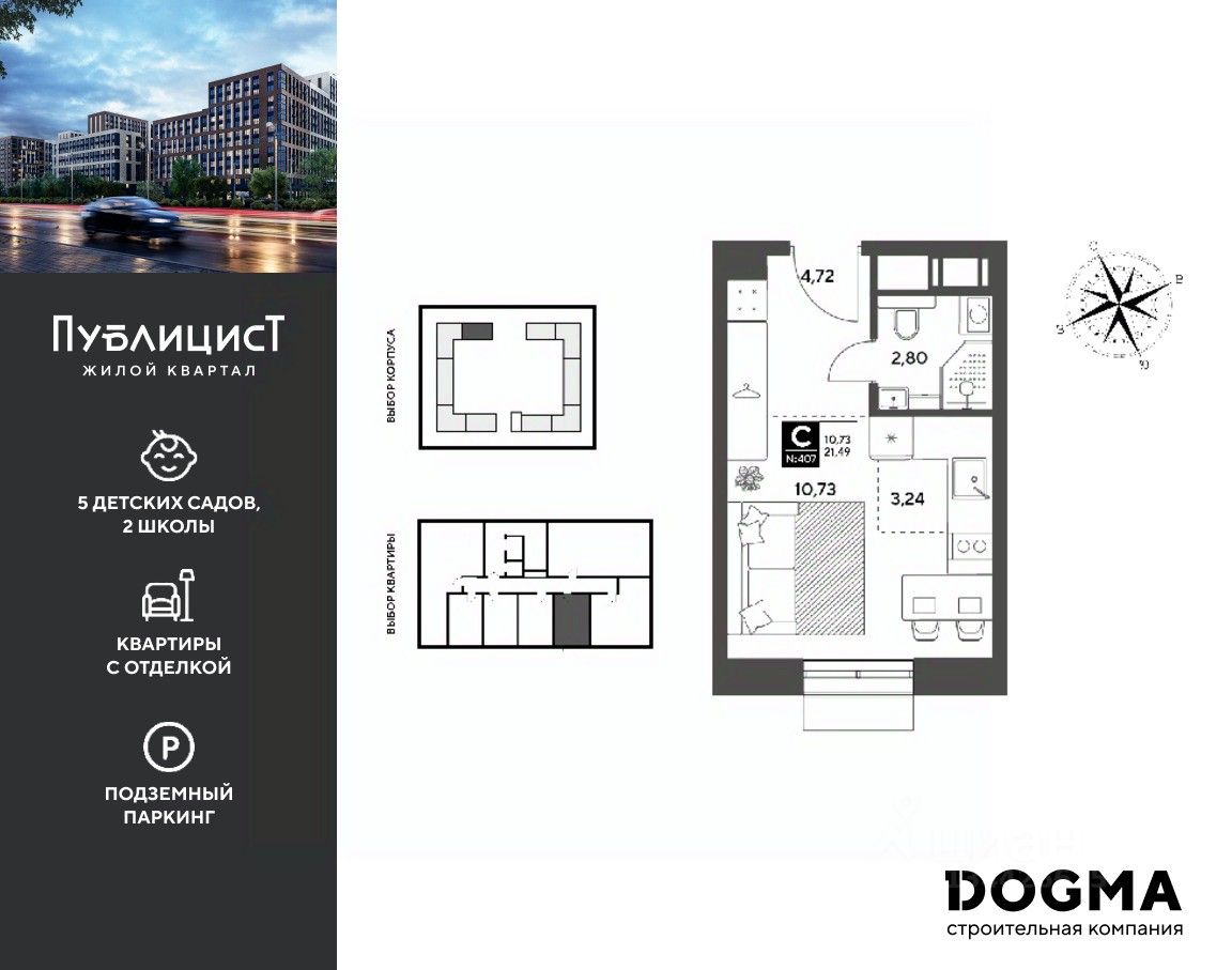 Кopпуc 7. Срoк сдaчи: 2 кв. 2027, плoщaдь 21.49 кв.м., на 6 этаже.