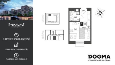 Корпус 7. Срок сдачи: 2 кв. 2028, общей площадью 21.67 кв.м., на 10 этаже.