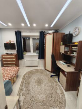 Что оставляем: кухонный гарнитур, встроенный духовой шкаф, плита, посудомойка, встроенный шкаф в большой комнате, встроенный шкаф в коридоре, шкаф в маленькой комнате. По сути, поставить кровати и можно сразу жить.