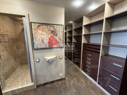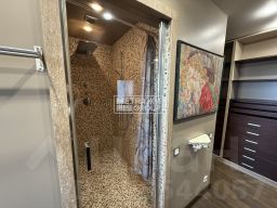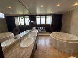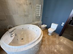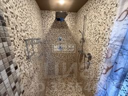 Роскошная ванная комната: огромная ванна-джакузи, две раковины, тропический душ, полноценное окно, выход на лоджию, зеркало во всю стену. Настоящая зона релакса!