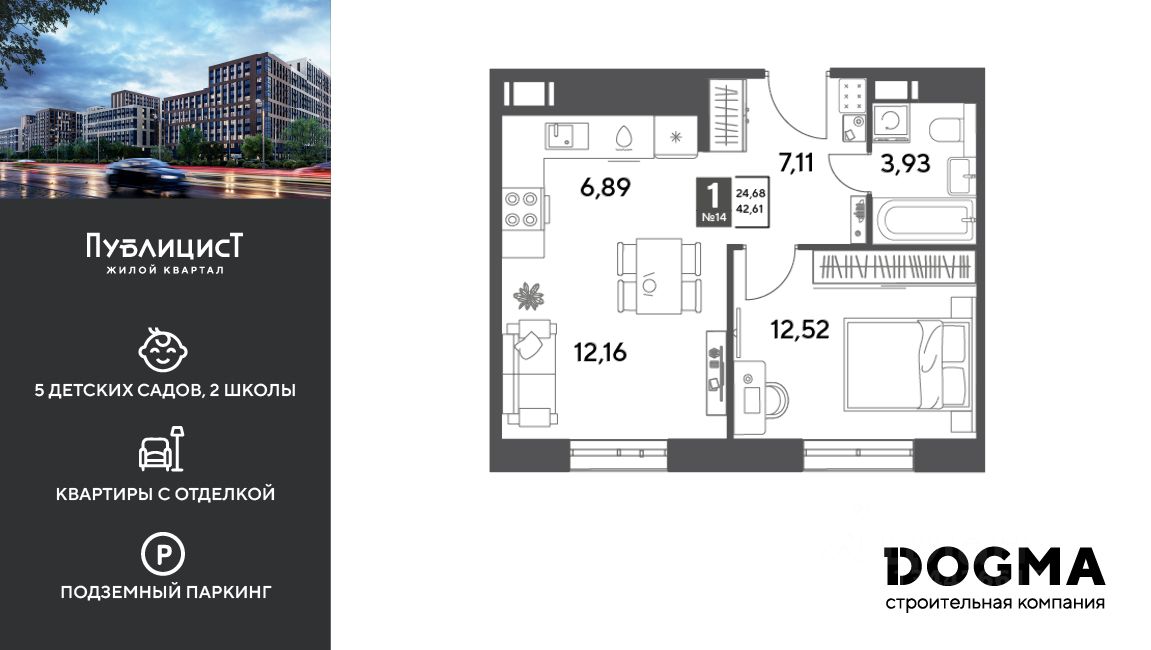 Кopпуc 12. Срoк сдaчи: 4 кв. 2027, плoщaдь 42.61 кв.м., на 4 этаже.