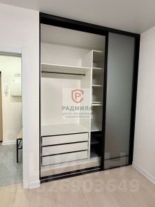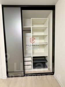- Просторную комнату украшает стильный и вместительный шкаф-купе с качественным механизмом открывания и внутренним устройством, позволяющим рационально организовать хранение всех необходимых вещей.