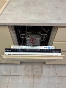 - Кухня оборудована современной мебелью и бытовой техникой, включая посудомоечную машину, духовку, варочную поверхность, вытяжку и встроенный холодильник.