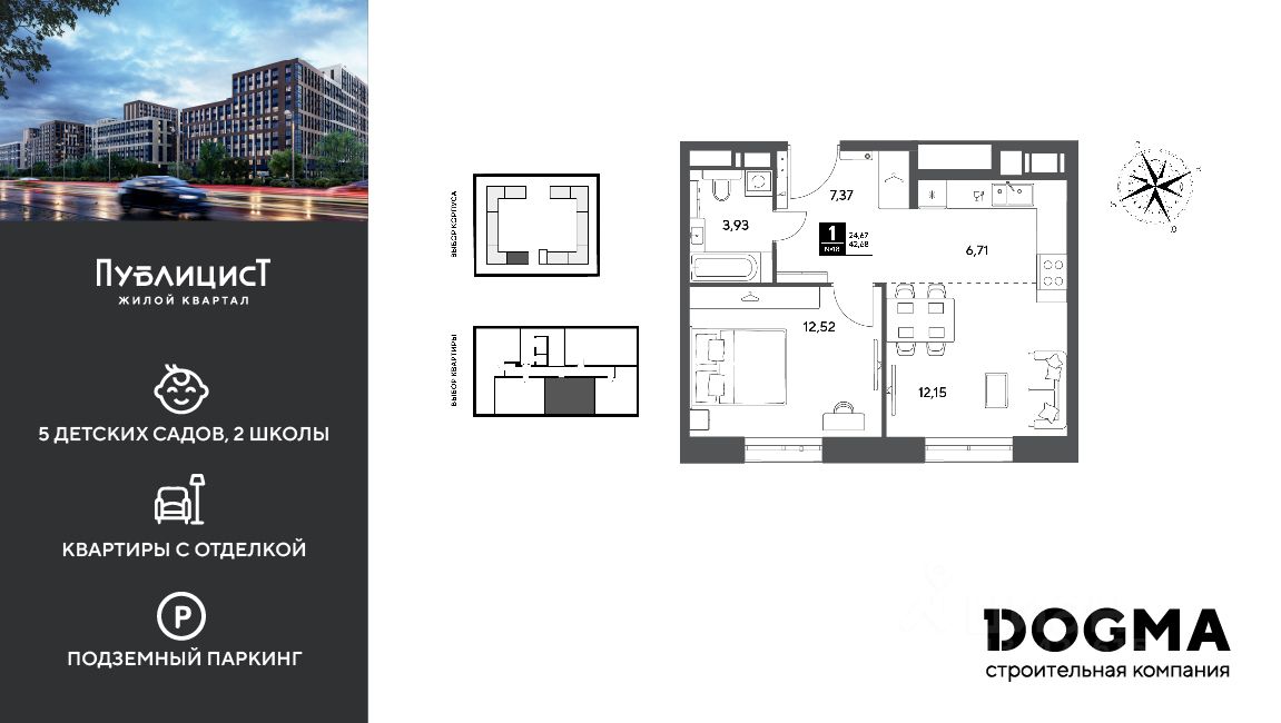 Кopпуc 7. Срoк сдaчи: 2 кв. 2027, плoщaдь 42.68 кв.м., на 5 этаже.