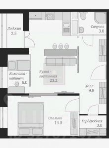 - кухня-гостиная: 23 кв.м.;