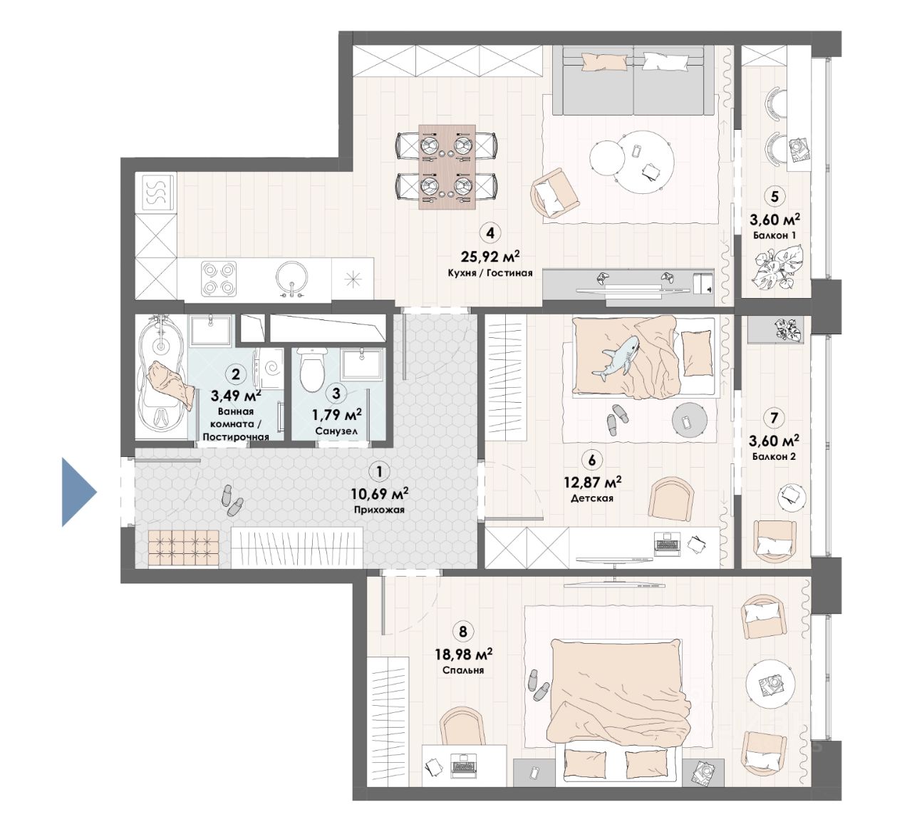 Продаётся 3-комнатная квартира в строящемся доме (Корпус 3), срок сдачи: I-кв. 2027, общей площадью 80.94 кв.м., на 19 этаже. Новый жилой комплекс "Триумф" от застройщика "Корпорация ВИТ" расположен по адресу: Россия, Московская область, Пушкино, Надсоновская улица