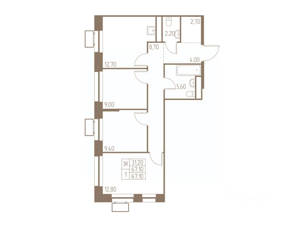 67,1 м²