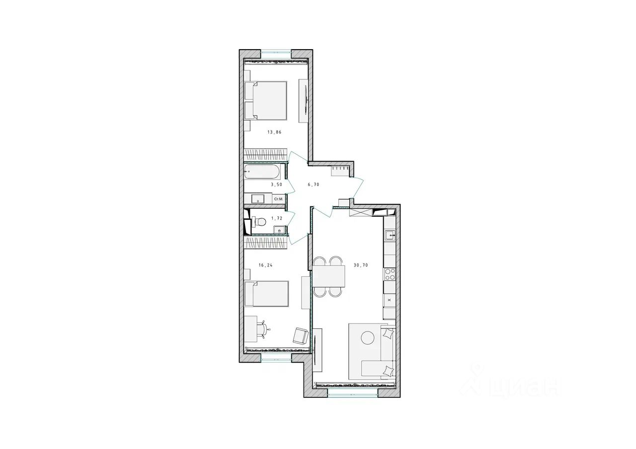Продаётся 2-комнатная квартира в сданном доме (Корпус 1), срок сдачи: 4-кв. 2023, общей площадью 72.70 кв.м., на 8 этаже.