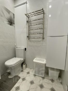 Приятным дополнением станет: теплый пол, установленная система аква-стоп, проточный водонагреватель, большое количество шкафов, в том числе встроенных.