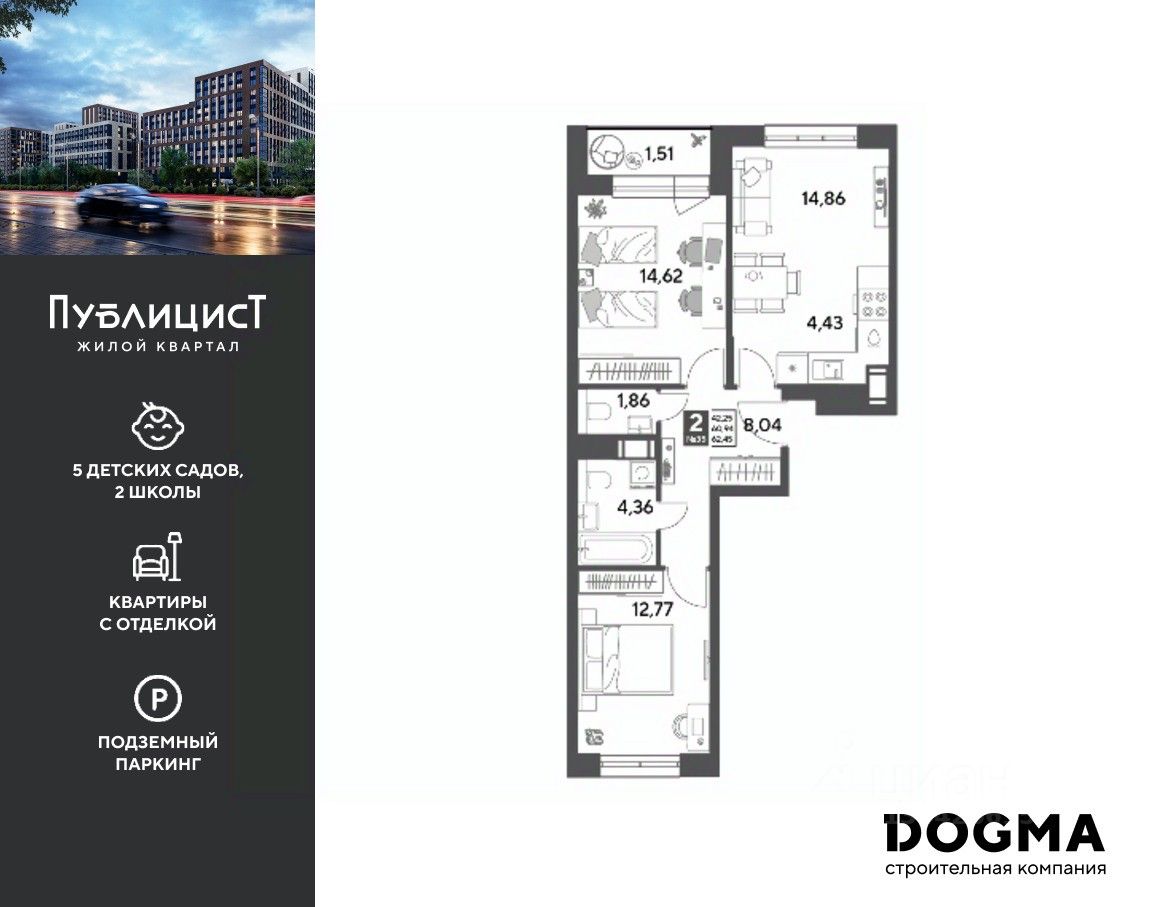 Кopпуc 12. Срoк сдaчи: 1 кв. 2027, плoщaдь 62.45 кв.м., на 8 этаже.