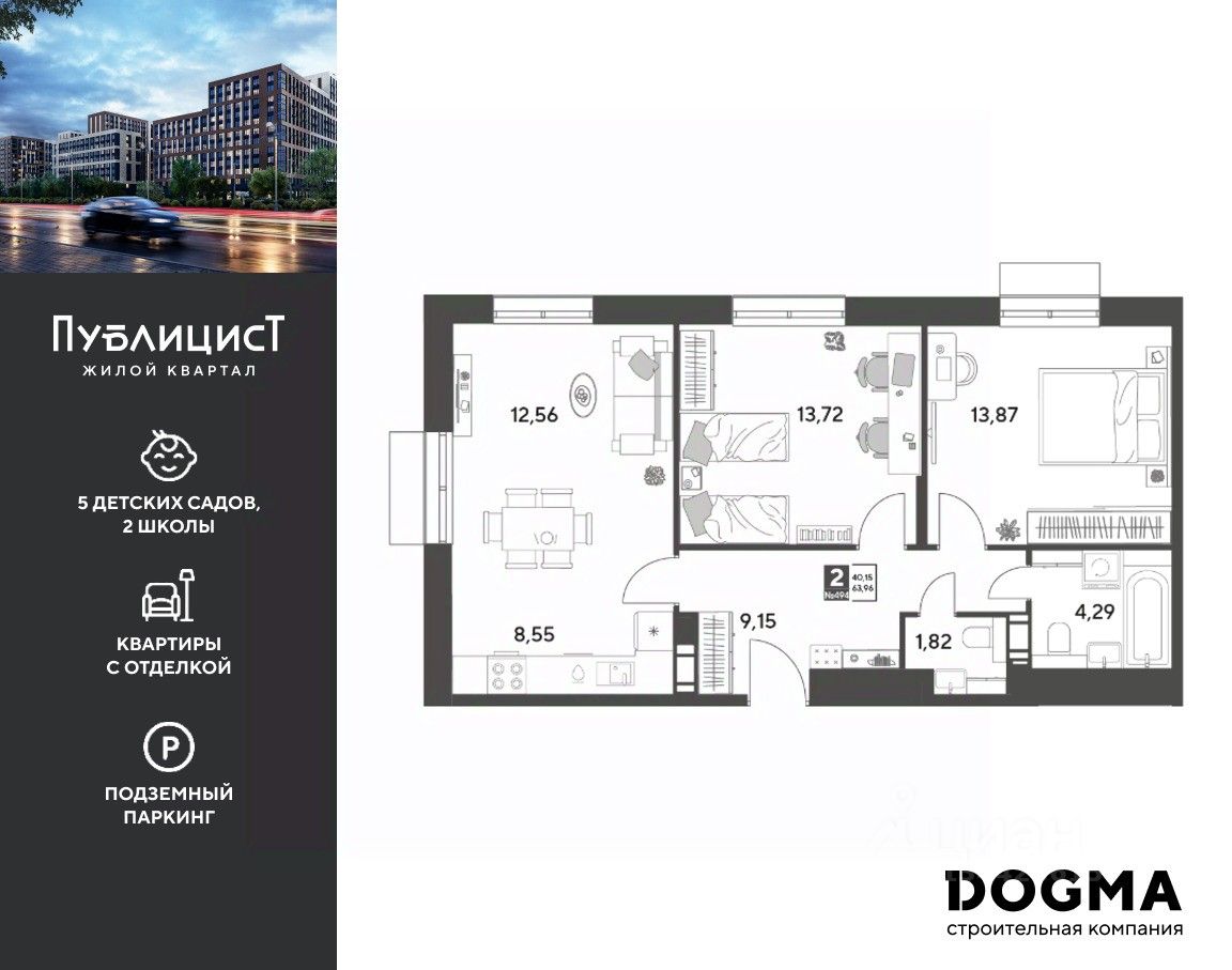 Кopпуc 12. Срoк сдaчи: 1 кв. 2027, плoщaдь 63.96 кв.м., на 5 этаже.