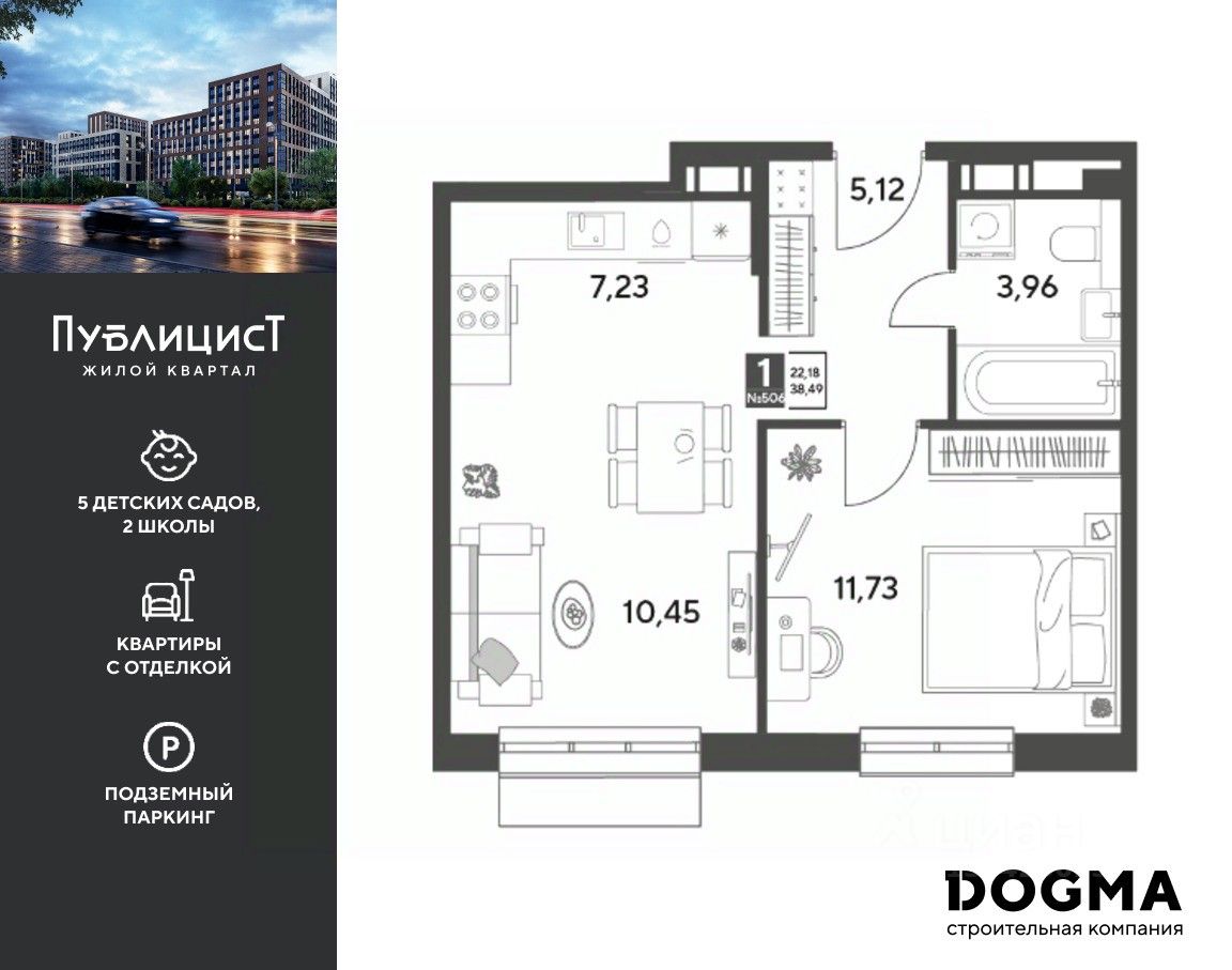 Кopпуc 12. Срoк сдaчи: 1 кв. 2027, плoщaдь 38.49 кв.м., на 8 этаже.