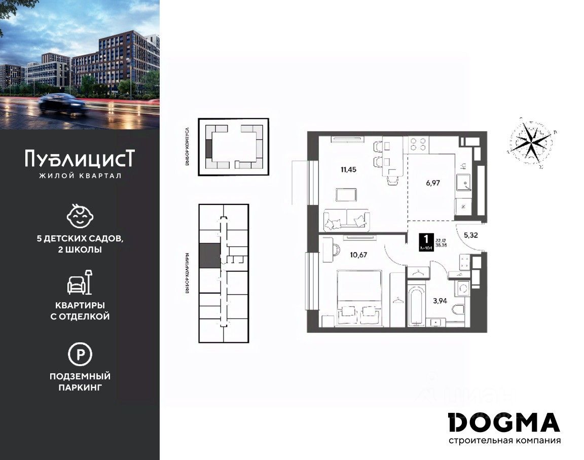 Кopпуc 7. Срoк сдaчи: 2 кв. 2027, плoщaдь 38.35 кв.м., на 2 этаже.
