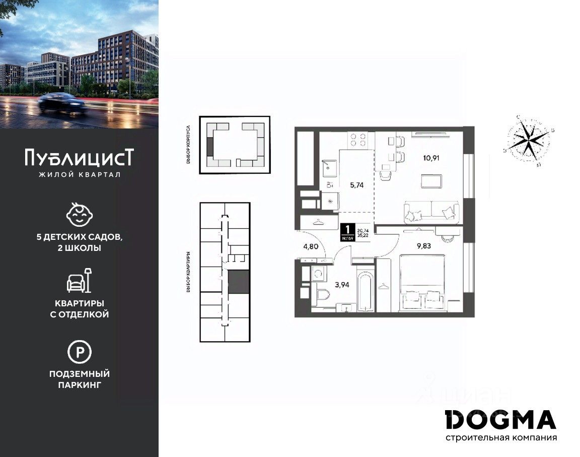 Первые этажи домов займут коммерческие помещения. В шаговой доступности от квартала находятся торговые центры с кинотеатрами, строительные гипермаркеты. Дворец спорта с бассейном. До пляжа реки Серебрянки — 17 минут пешком. На машине за семь минут можно доехать до дендропарка ВНИИЛМ, за 30 минут — до Национального парка "Лосиный остров".Согласно рейтингу отраслевого СМИ "Все о стройке" в марте 2026 года DOGMA занимает 3-е место в РФ по объему текущего строительства жилья, а также является крупнейшим застройщиком Краснодарского края.