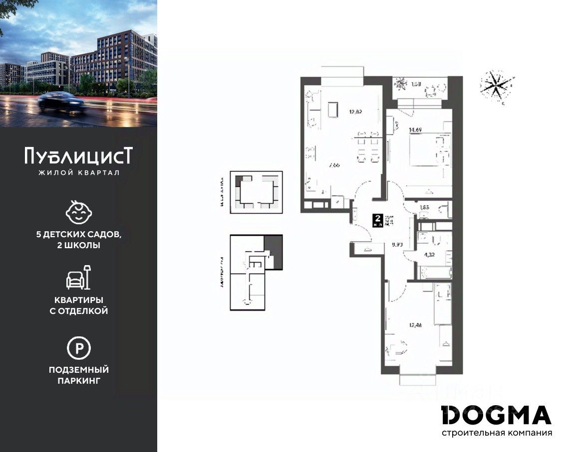 Кopпуc 7. Срoк сдaчи: 2 кв. 2027, плoщaдь 64.29 кв.м., на 2 этаже.