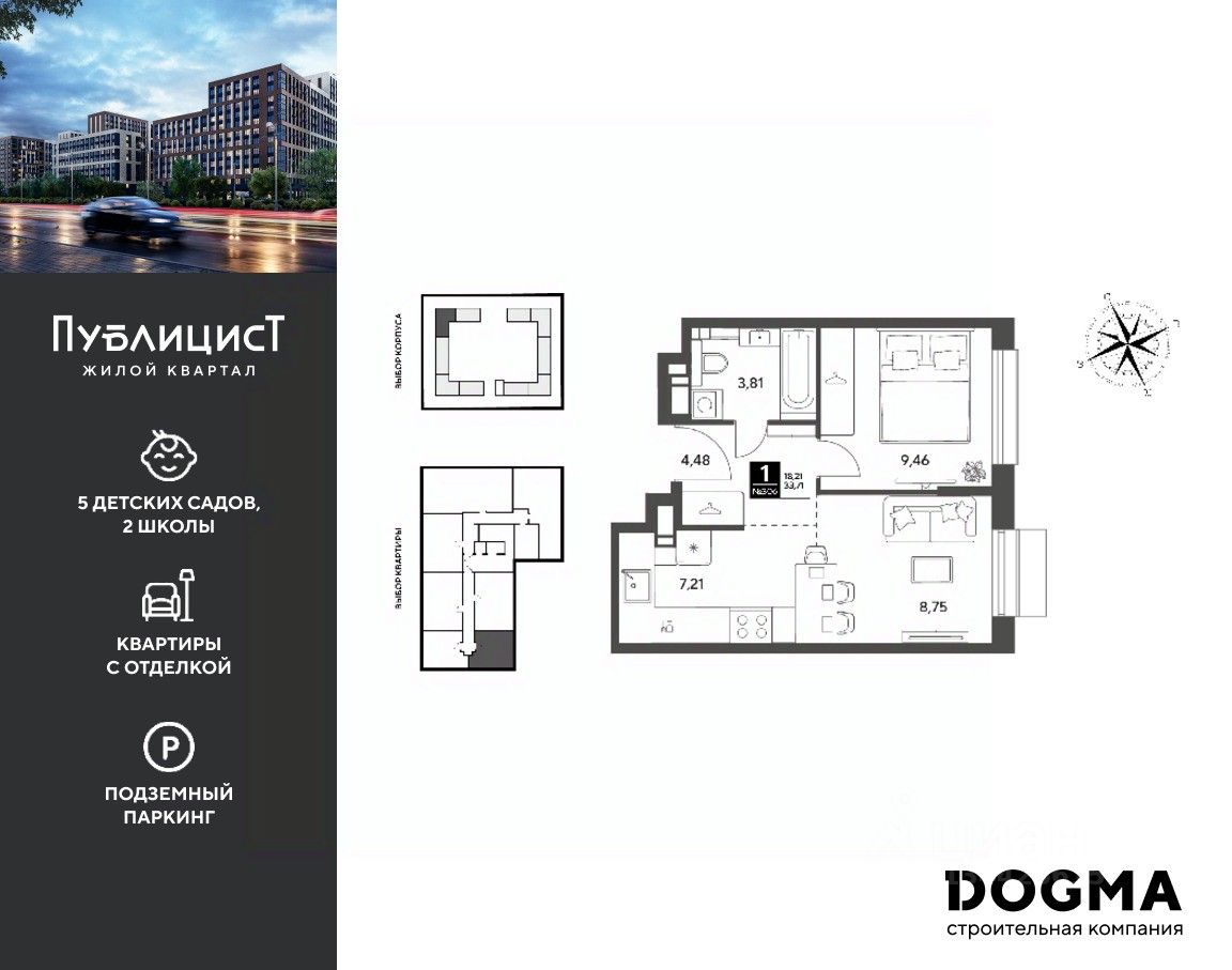 Кopпуc 7. Срoк сдaчи: 2 кв. 2027, плoщaдь 33.71 кв.м., на 7 этаже.