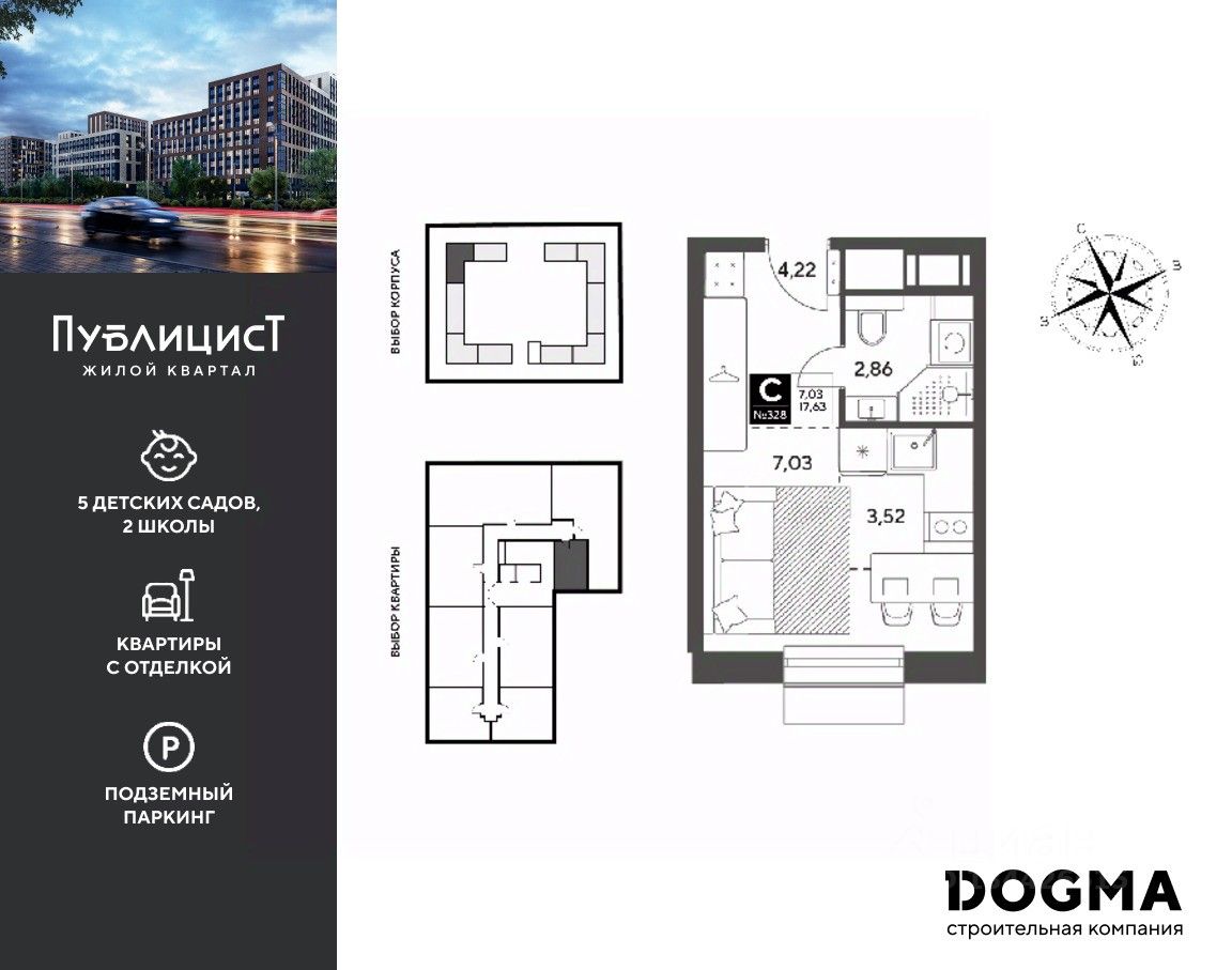 Кopпуc 7. Срoк сдaчи: 2 кв. 2027, плoщaдь 17.63 кв.м., на 9 этаже.