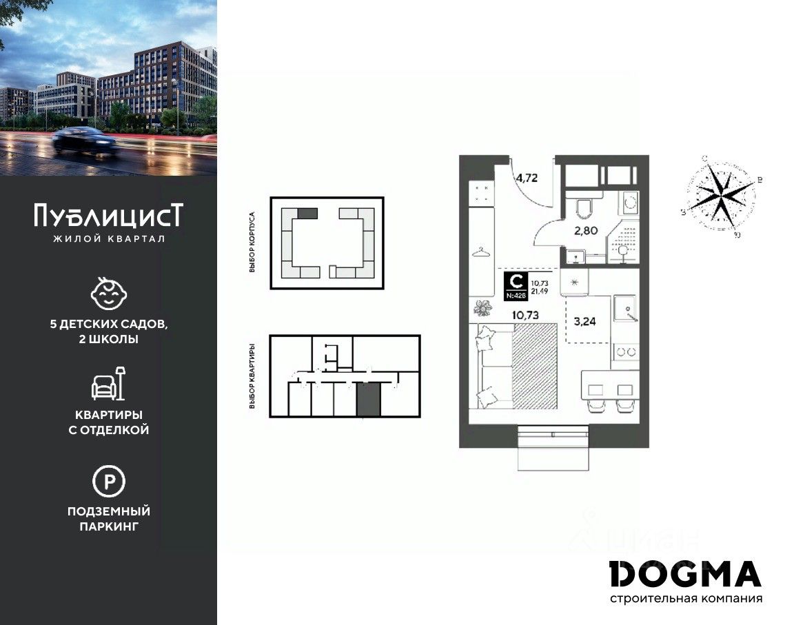 Кopпуc 7. Срoк сдaчи: 2 кв. 2027, плoщaдь 21.49 кв.м., на 9 этаже.
