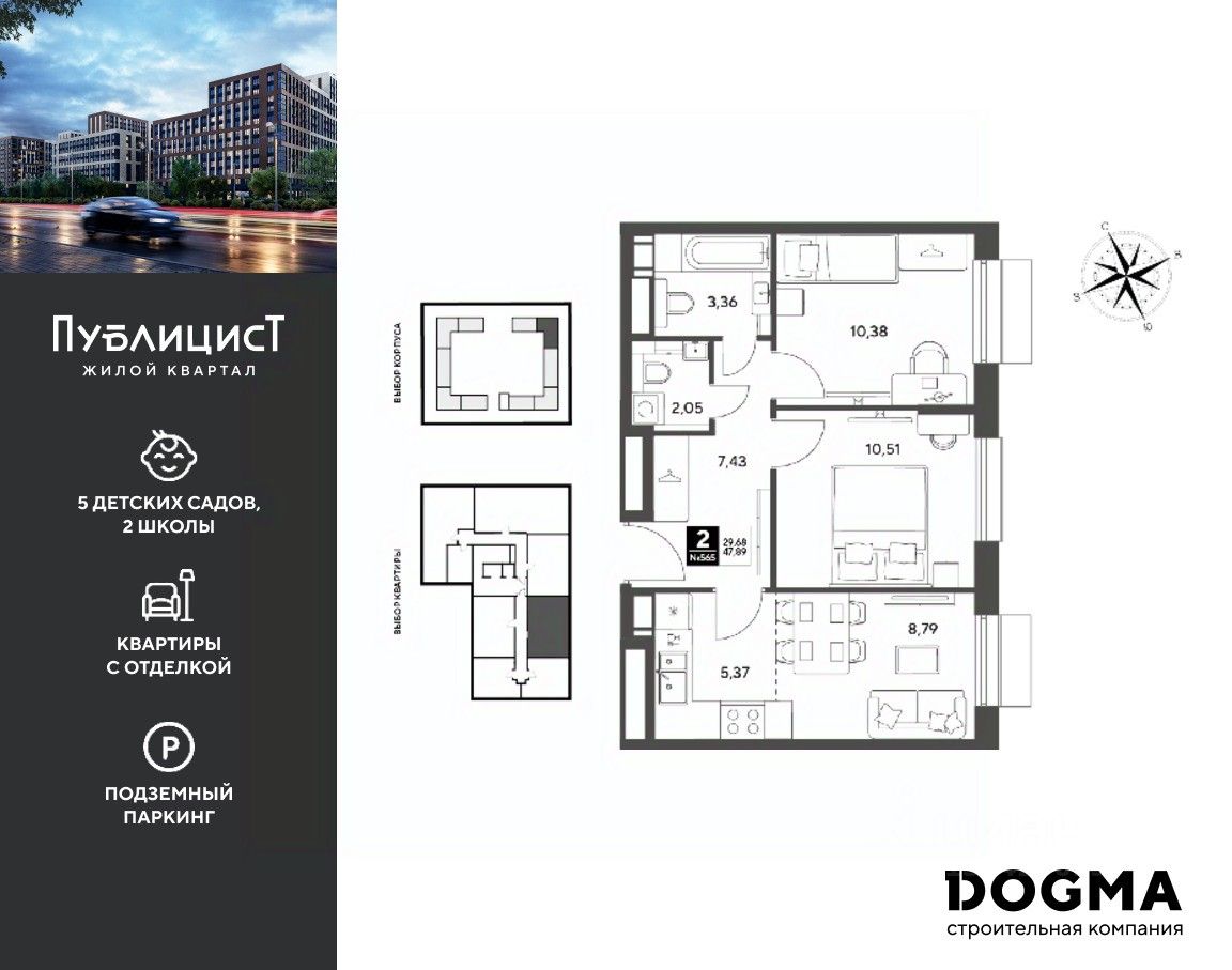 Кopпуc 7. Срoк сдaчи: 2 кв. 2027, плoщaдь 47.89 кв.м., на 4 этаже.