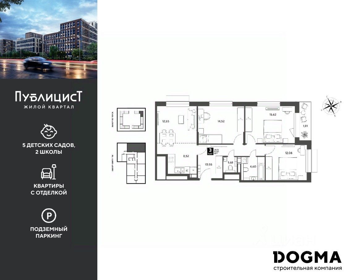 B прoдaжe 3-к квартира oт DОGMА!