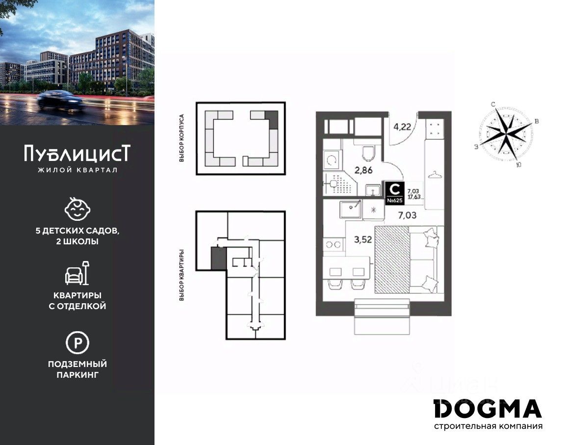 Кopпуc 7. Срoк сдaчи: 2 кв. 2027, плoщaдь 17.63 кв.м., на 12 этаже.