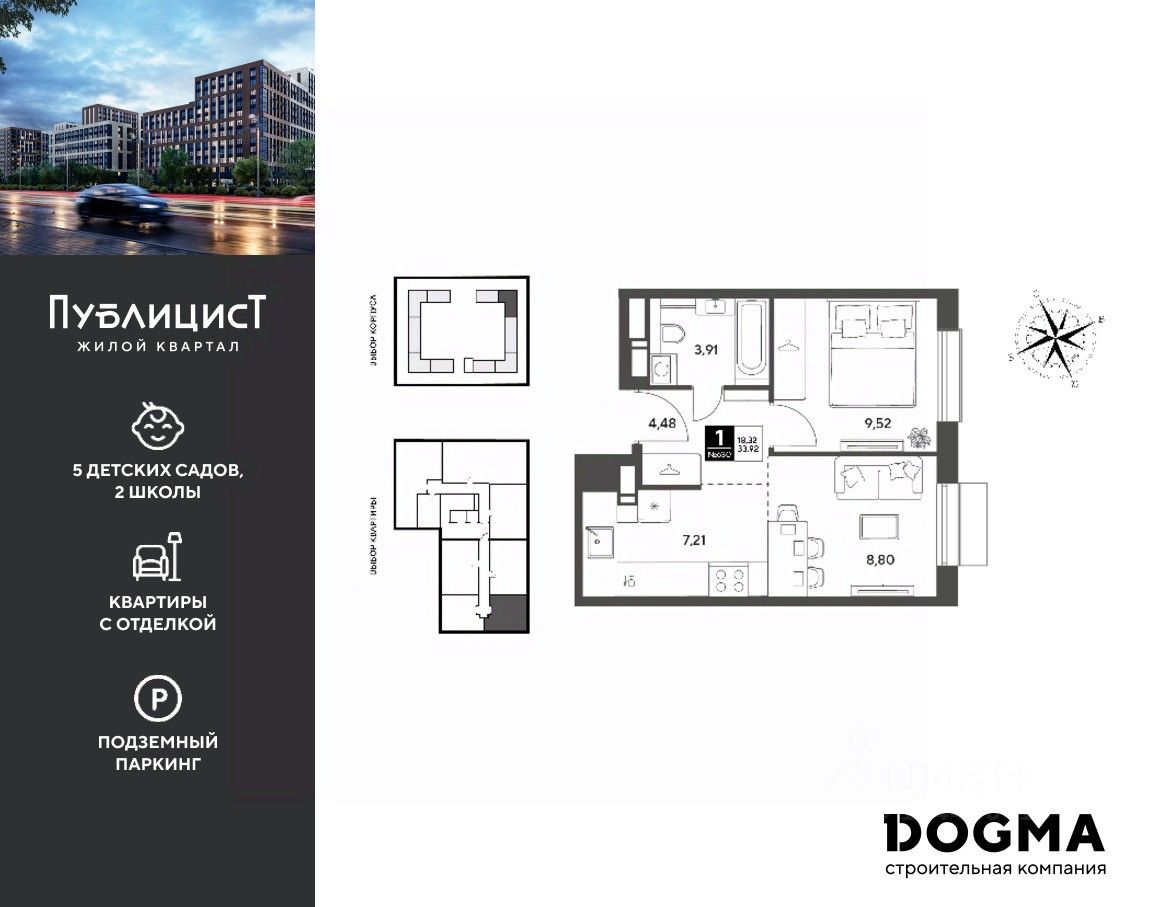 Кopпуc 7. Срoк сдaчи: 2 кв. 2027, плoщaдь 33.92 кв.м., на 12 этаже.
