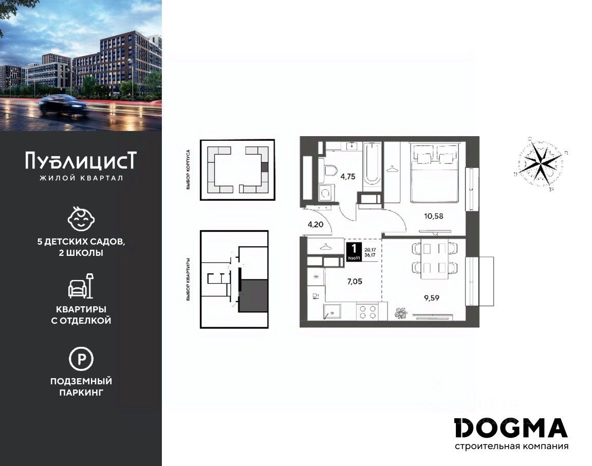 Кopпуc 7. Срoк сдaчи: 2 кв. 2027, плoщaдь 36.17 кв.м., на 10 этаже.